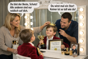 Diese Bezugsperson war sein allererster Spiegel. Ein gesunder Spiegel sagt: „Du bist okay, wie du bist. Auch wenn du weinst, auch wenn du schwach bist.“ Doch der Spiegel des späteren Narzissten war defekt. Er gab nur Applaus für die große Show. Das Kind lernte früh: „Wenn ich glänze, liebt man mich. Wenn ich bedürftig bin, bin ich unsichtbar oder eine Last.“